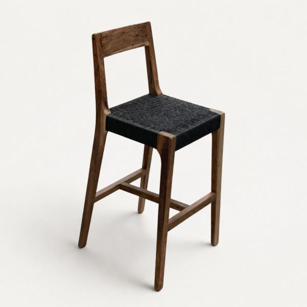La Banqueta Nativa combina estructura en madera nativa con asiento tejido a mano, manteniendo el carácter y la sobriedad de la línea en una tipología pensada para barras y islas.