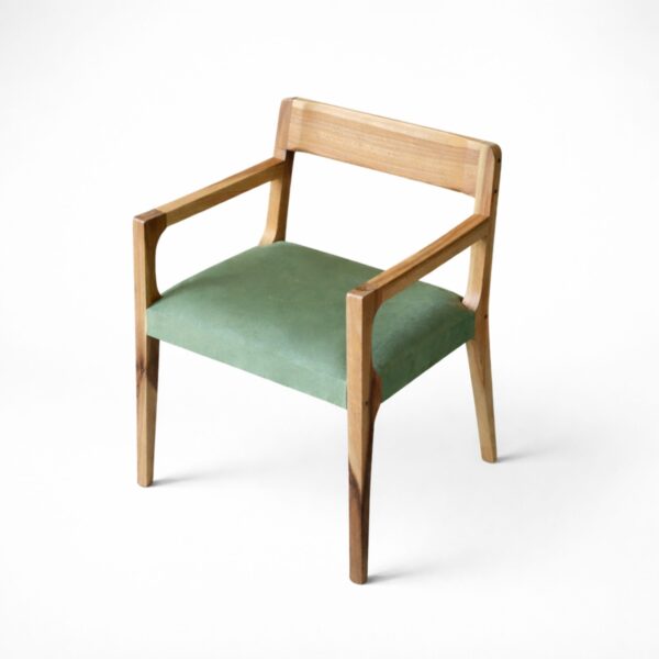 El Sillón Candy Nativo combina estructura en madera maciza con asiento tapizado, manteniendo una lectura limpia y contenida.