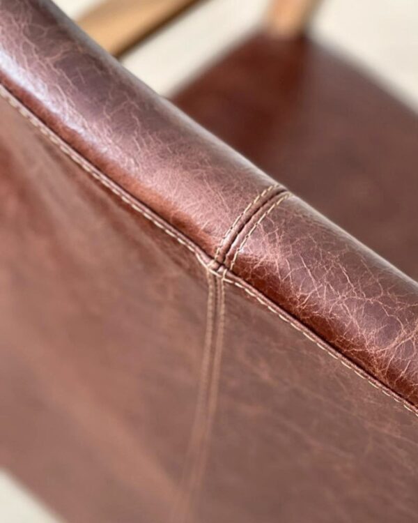 Asiento y respaldo tapizados en cuero vacuno genuino.